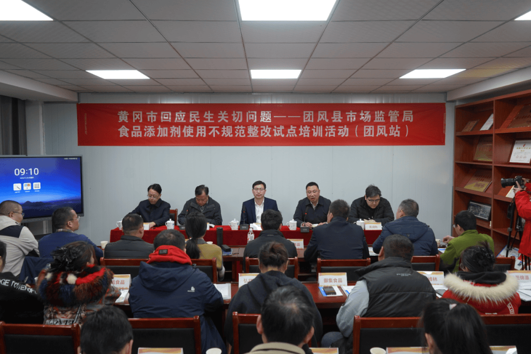 本次培训会由黄冈市市场监管局党组、药品总监伊楗军掌管并指点。团风县人平易近党组、副县长饶斌出席并做带动讲话,市市场监管局食物出产科科长郭成标进行专题讲课。全县食物添加剂利用出产企业(含小做坊)担任人、质量办理员及县市场监管局相关监管法律人员加入培训,会场进修空气稠密。